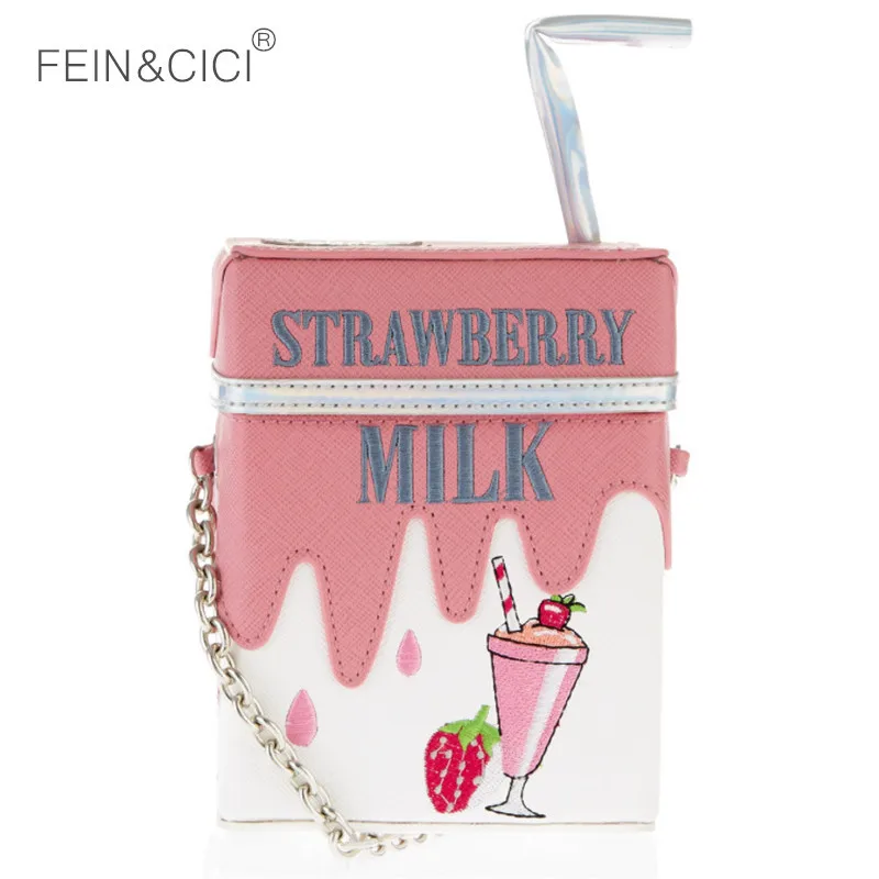 Product Name: Torba z kartonu mleka śliczne skórzane łańcuchy torba crossbody dziewczyny kobiety różowe cukierki truskawkowe torby sucker 2019 nowy drop shipping