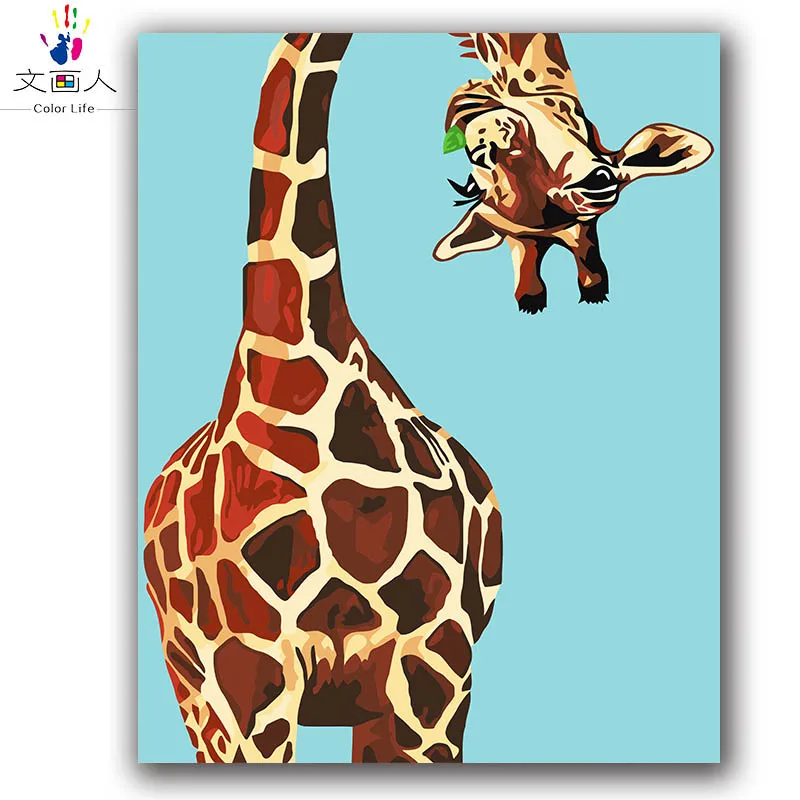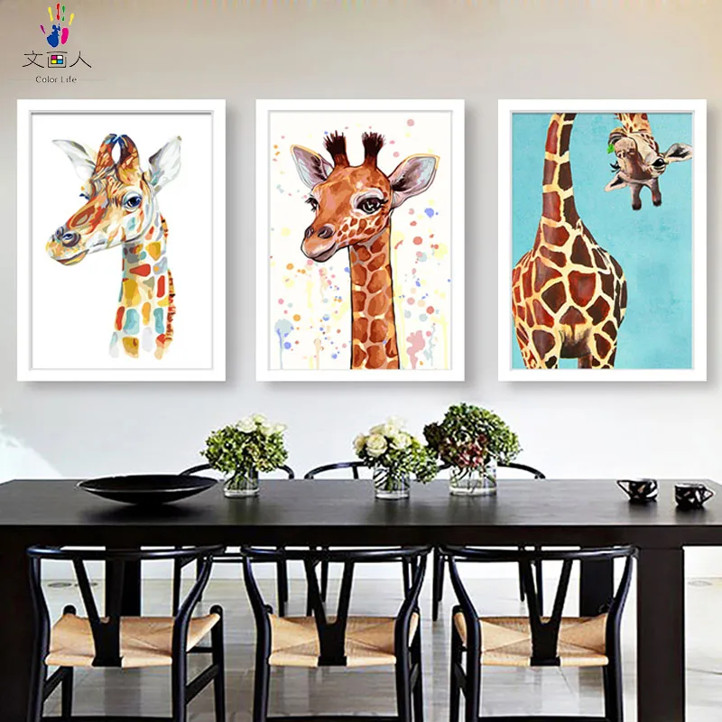 Special Offer Diy farba kolorująca według numerów żyrafa jedzenia trawy zwierząt zdjęcia malowanie przez numery z kolory dla dzieci 3 sztuk wystroju domu Discount 0% Today!