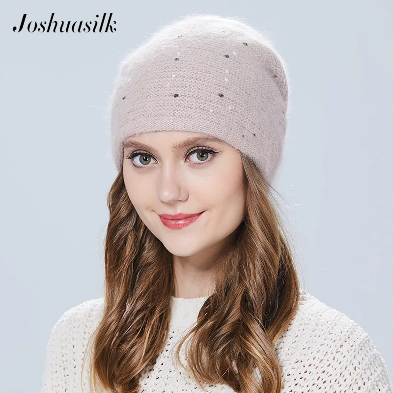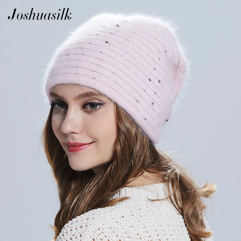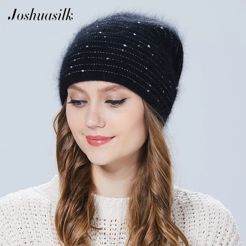 Special Offer Joshuasilk czapka zimowa damska motyl dzianinowa wełna angora w paski czapki z złota ozdoba czapka podwójna ciepła czapka Discount 0% Today!