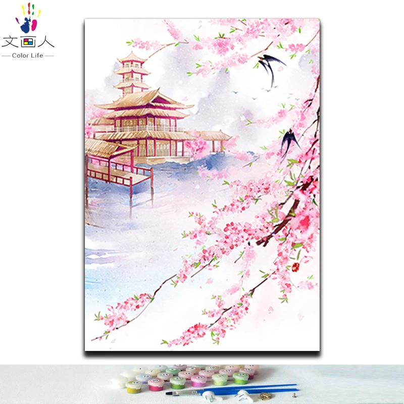 Special Offer Chiński starożytny dom budynek pałac krajobraz diy farbowanie farby według numerów z zestawami o tradycyjny chiński styl Discount 0% Today!