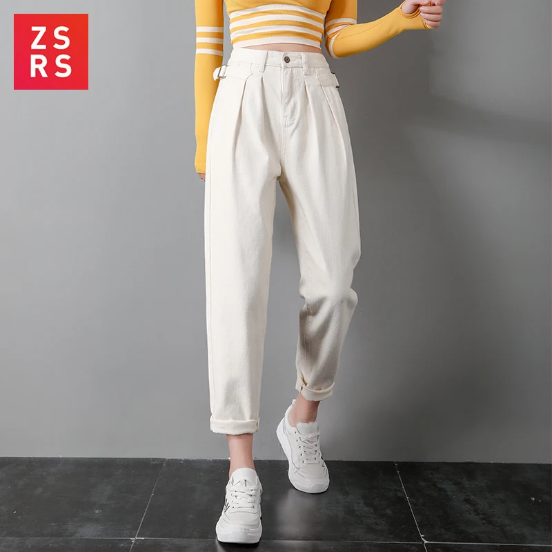 Special Offer Zsrs morelowe spodnie z wysokim stanem Lady Loose Hallen Fall 2019 nowe szerokie nogawki kombinezony rzepowe dorywczo spodnie do kostek Discount 25% Today!