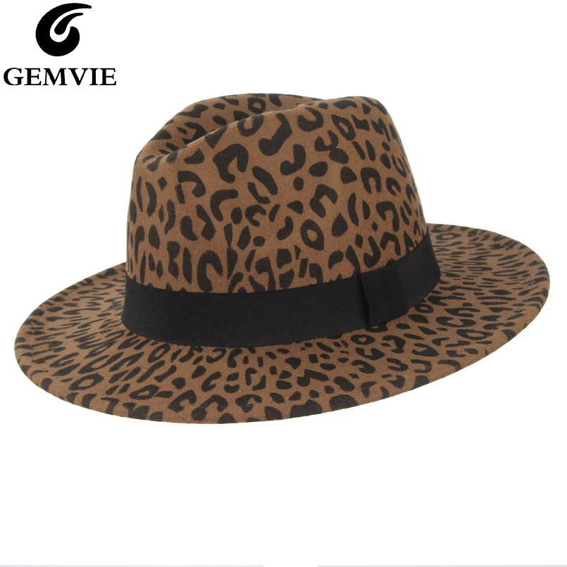 Special Offer GEMVIE 2019 szerokie rondo Leopard wełna Fedora filcowy kapelusz dla kobiet nowe ciepłe zimowe kapelusz Panama Jazz Cap z zespołu Discount 30% Today!