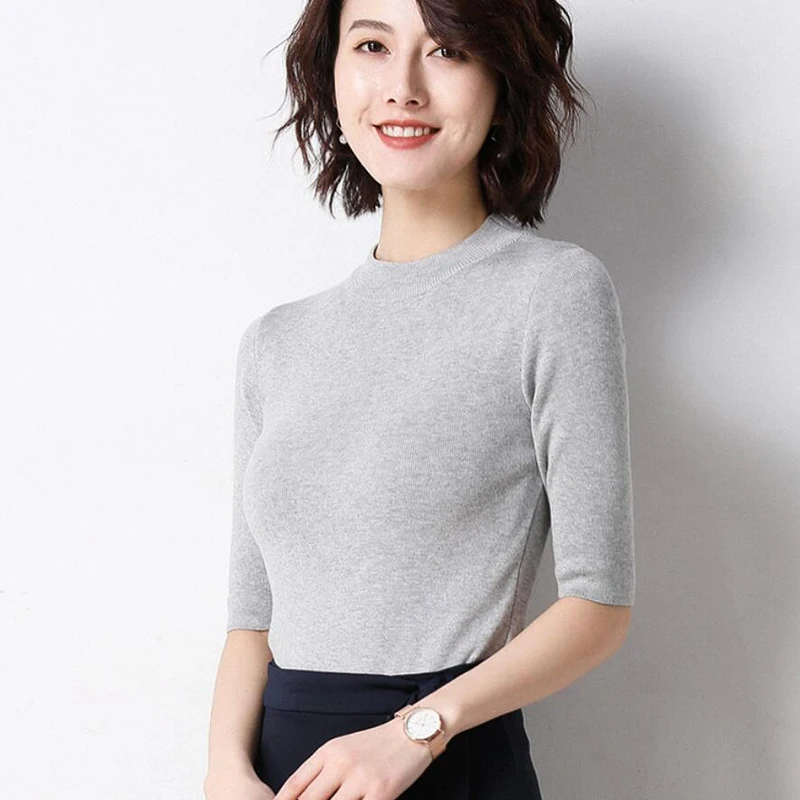 Special Offer GCAROL 2019 kobiety stoją kołnierz pół rękawa 30% sweter z wełny Stretch OL jesień wiosna zima cukierki renderowania dzianiny zwykły sweter Discount 30% Today!