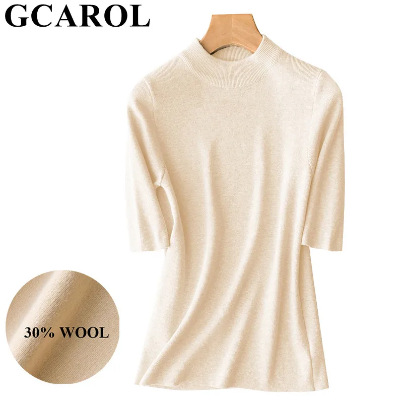 Product Name: GCAROL 2019 kobiety stoją kołnierz pół rękawa 30% sweter z wełny Stretch OL jesień wiosna zima cukierki renderowania dzianiny zwykły sweter