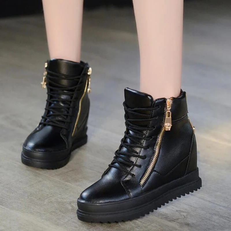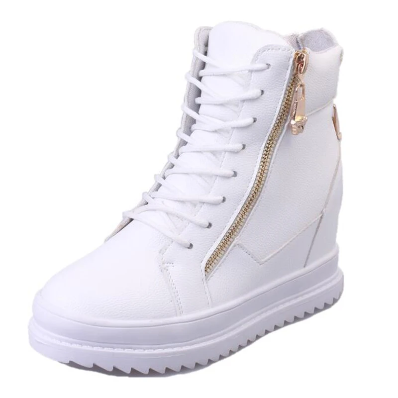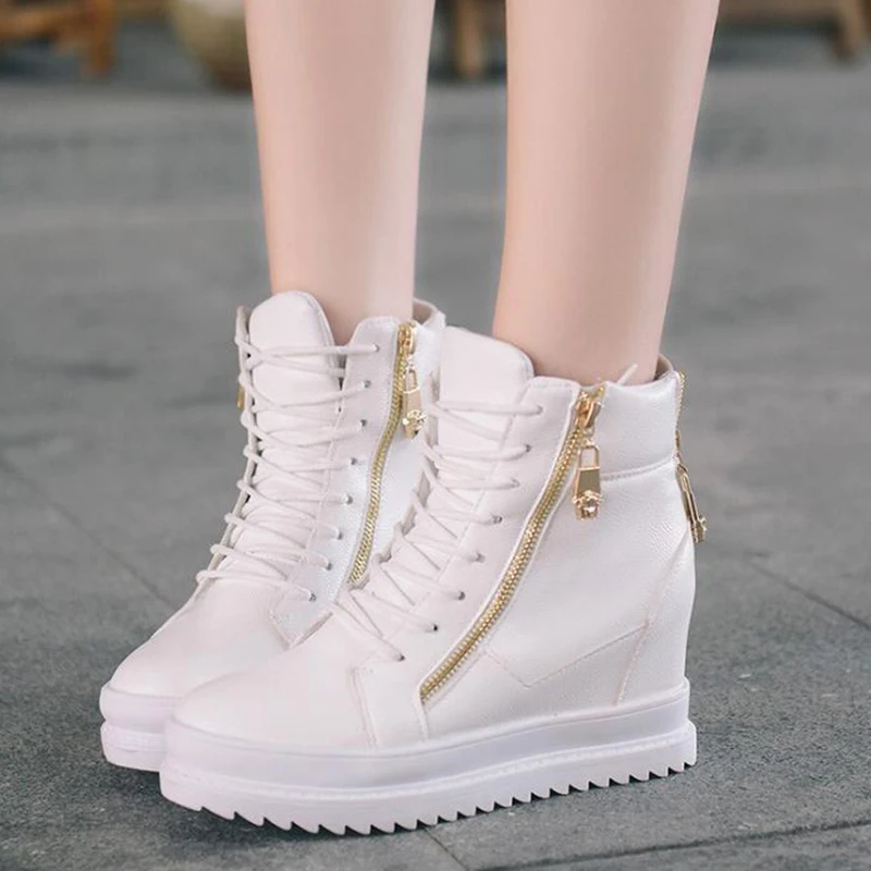 Product Name: COVOYYAR 2019 Hidden Heel trampki damskie wiosna jesień moda High Top Casual buty na zamek błyskawiczny kobiety białe czarne buty WSN672