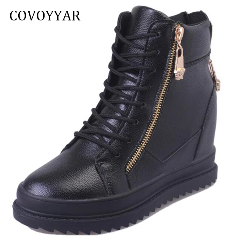 Special Offer COVOYYAR 2019 Hidden Heel trampki damskie wiosna jesień moda High Top Casual buty na zamek błyskawiczny kobiety białe czarne buty WSN672 Discount 45% Today!