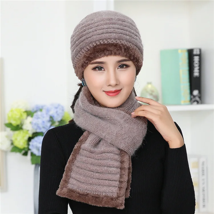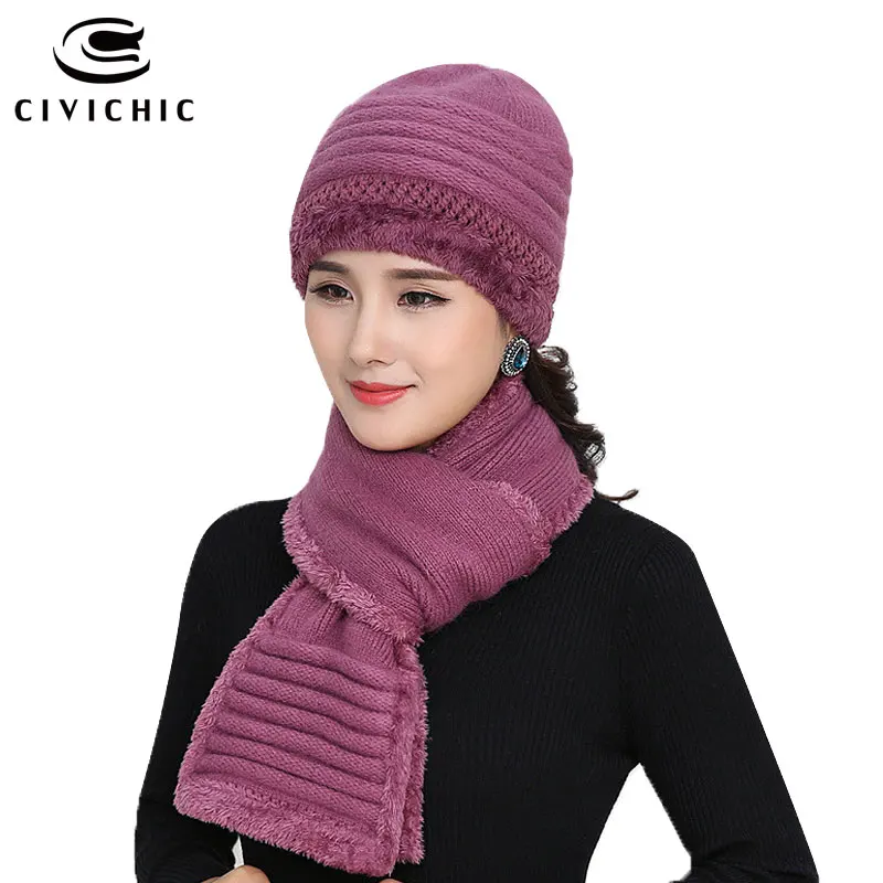Product Name: CIVICHIC stare maski ciepły zestaw szydełkowa czapka szalik z aksamitu kobieta dzianiny nakrycia głowy zagęścić czapka babcia prezent Twist polar szal SH161