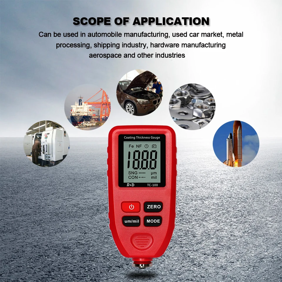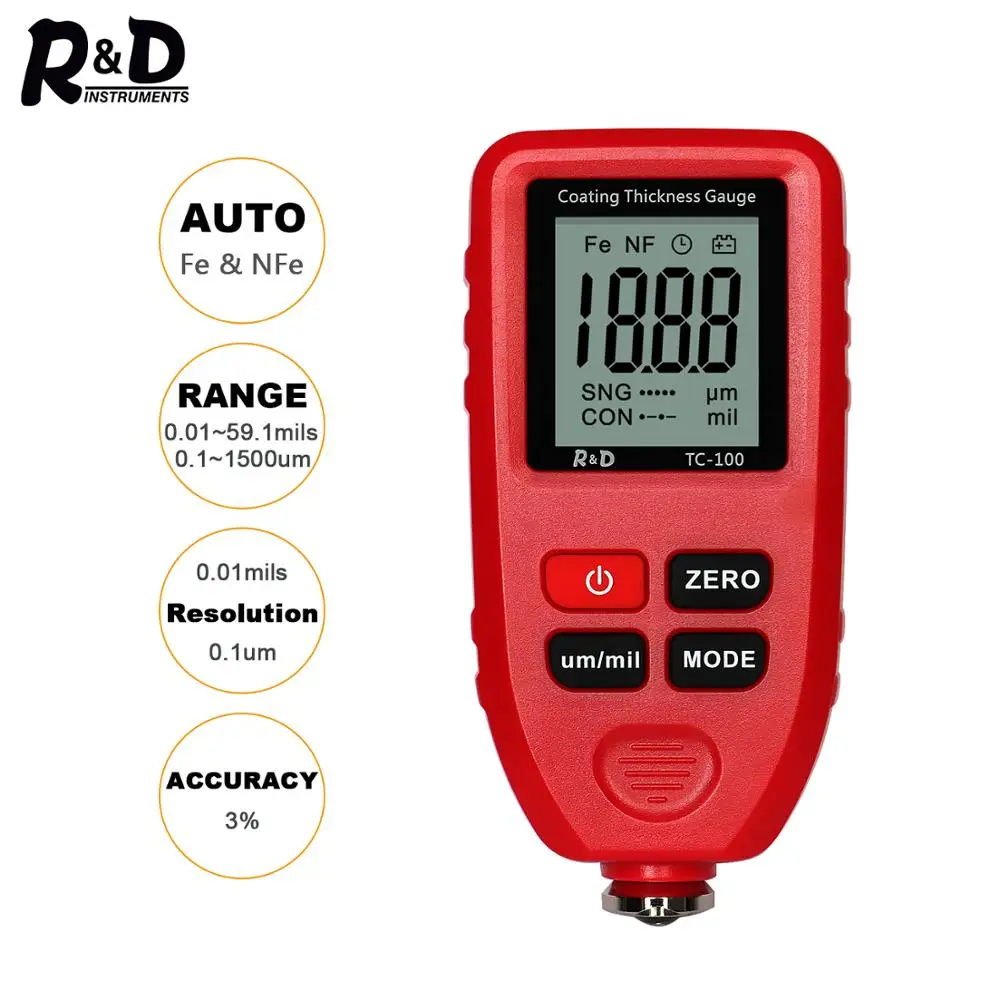 Product Name: R D TC100 czerwony miernik grubości lakieru 0.1um 0 1300 lakieru samochodowego tester grubości pomiaru FE NFE rosyjski ręczne narzędzie do malowania