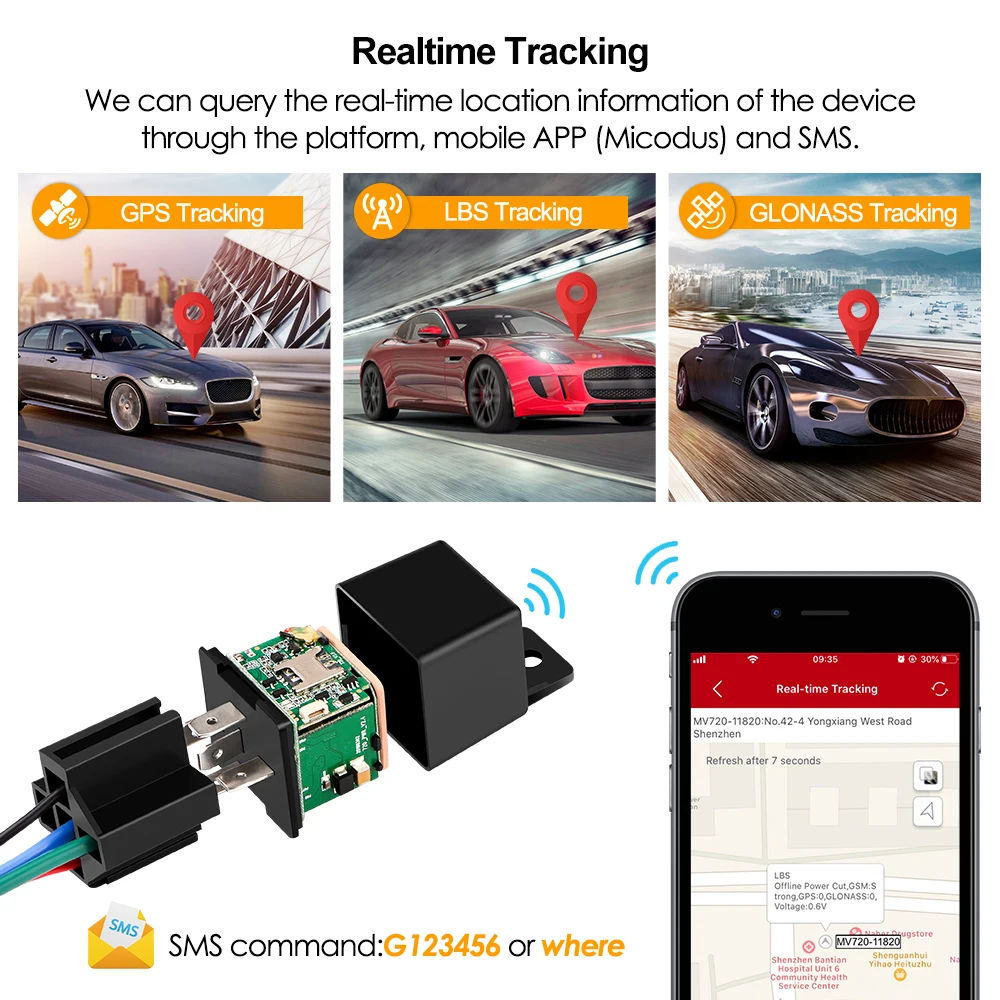 Product Name: Mini urządzenie śledzące gps nadajnik gps Micodus MV720 przekaźnik ukryty projekt odciąć paliwa samochodowy lokalizator gps 10 40V 80mAh alarm wibracyjny darmowa aplikacja