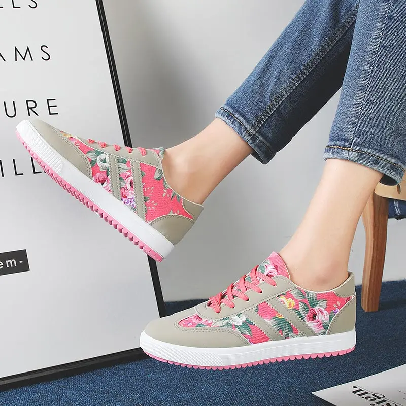 Product Name: Kobiety obuwie modne kwiatowe damskie trampki oddychające buty do chodzenia zasznurowane trenerzy płaskie tenisówki kobieta Plus rozmiar