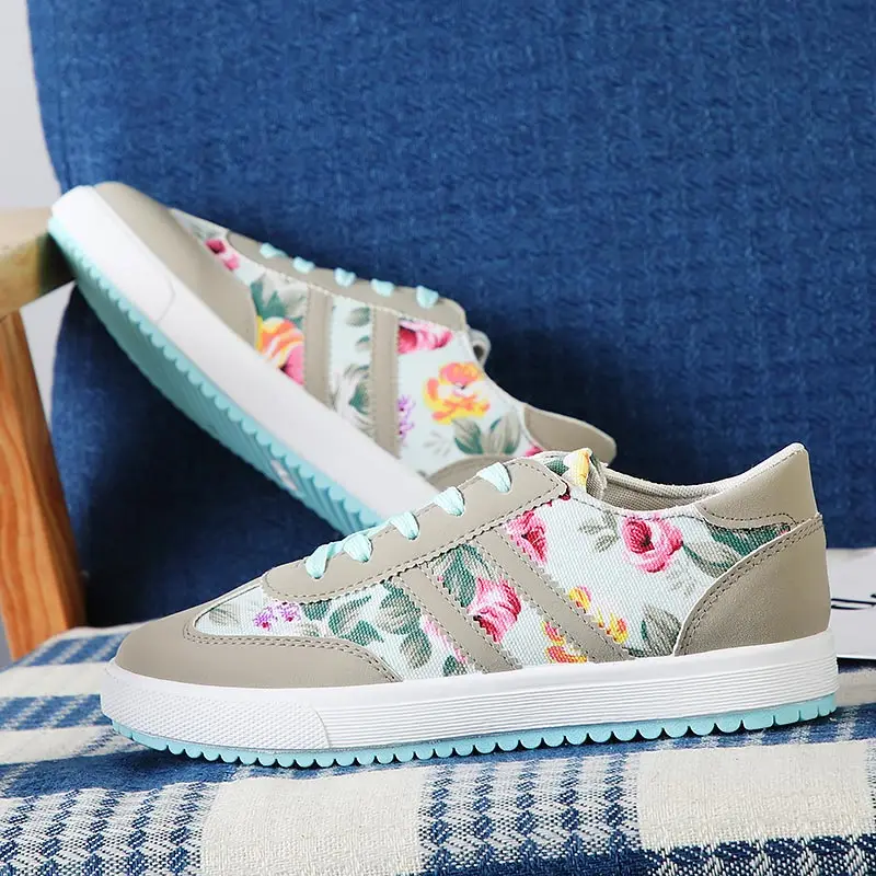 Special Offer Kobiety obuwie modne kwiatowe damskie trampki oddychające buty do chodzenia zasznurowane trenerzy płaskie tenisówki kobieta Plus rozmiar Discount 53% Today!